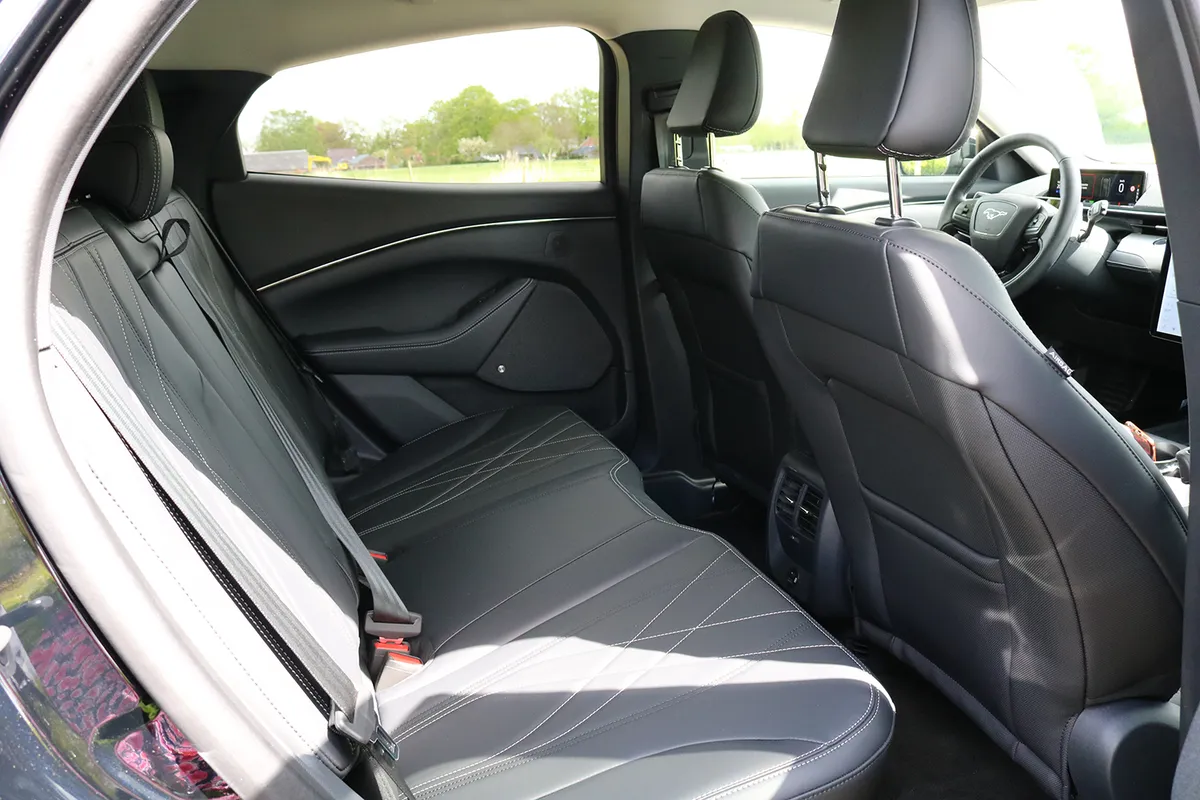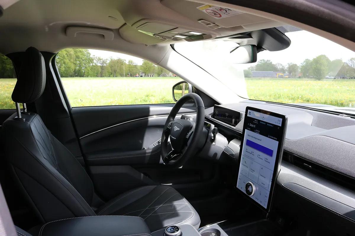 De elektrische Mustang heeft een vermogen van 269 pk en gaat van 0 naar 100 in slechts 6,2 seconden. Zoals iedere elektrische auto, komt ook de elektrische Mustang ook goed van zijn plek. Zodra je begint te rijden met de auto, merk je direct dat de auto goed op de weg ligt en fijn stuurt. Je hebt behoorlijk wat grip en daarnaast valt het ons ook op dat je relatief weinig last hebt van windruis. Qua rijmodi heb je drie opties. Je kunt kiezen voor Active, Whisper en Untamed. Kies je voor de derde optie, dan bootst de EV een geluid van een V8 motor na. Best wel een leuke feature. Ook is de auto uitgerust met een One Pedal Drive-systeem. Zodra je je voet van het gaspedaal haalt, dan remt de auto voor je af. Het systeem zorgt ervoor dat je over het algemeen met één pedaal kunt rijden.